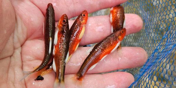 Pictured is a queen snake. Queen snakes are a species of nonvenomous semiaquatic snake and mainly eat crayfish which are also in our creeks. Occasionally they eat small fish and tadpoles.
