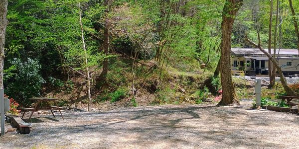 30 amp campers less than 29 ft will fit at this creekside RV site. You will back in and will be facing the creek. $45/night +tax