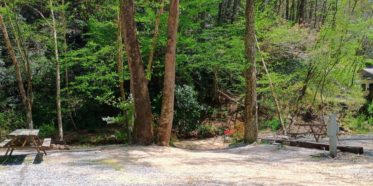 30 amp full hookup. Creekside, back in. $45/night + tax