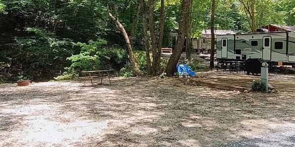 Perfect site for popups! $40/night + tax Nestled in between two permanent campers. Small campers can also fit here for 30 amp full hookup at $40/night + tax